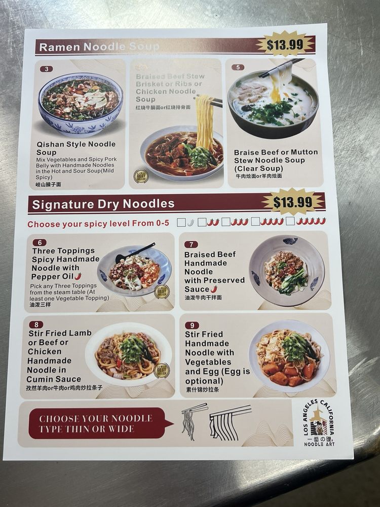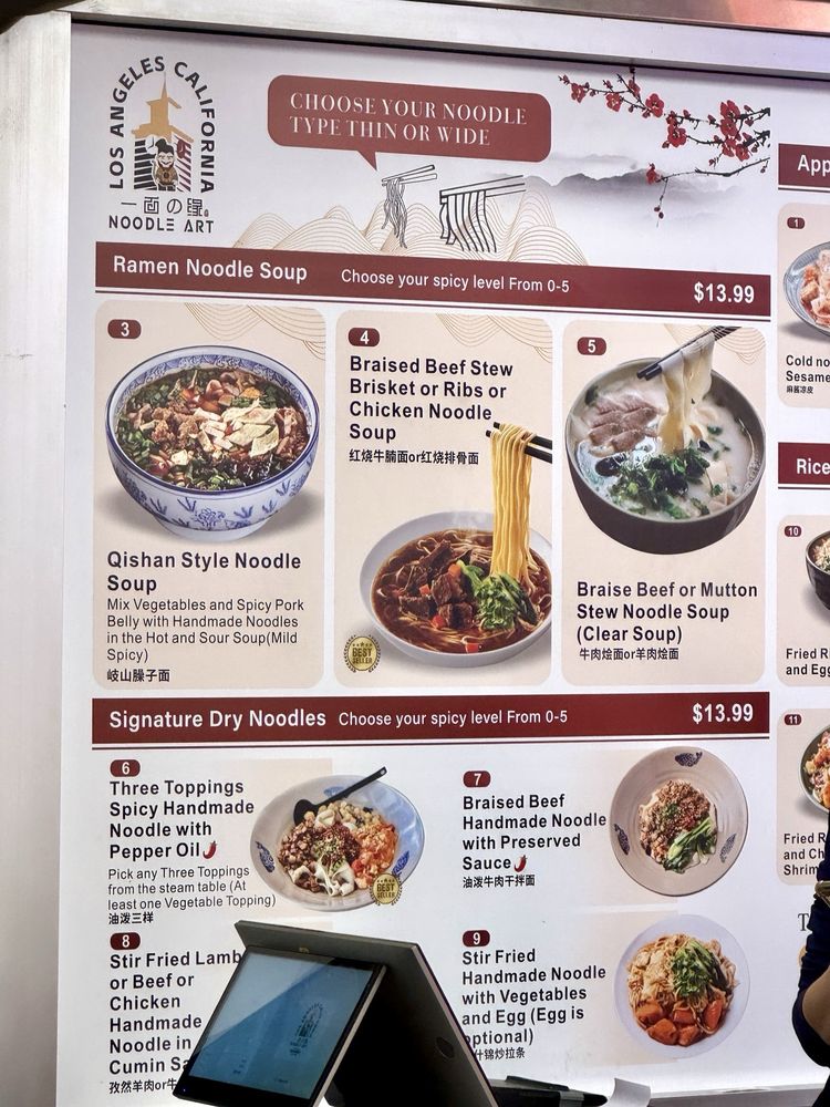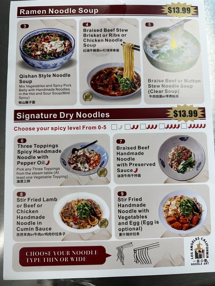 - Ramen: Indulge in rich, flavorful soups like the Qishan Style Noodle Soup or the Braised Beef Stew, each priced at just $14.99.